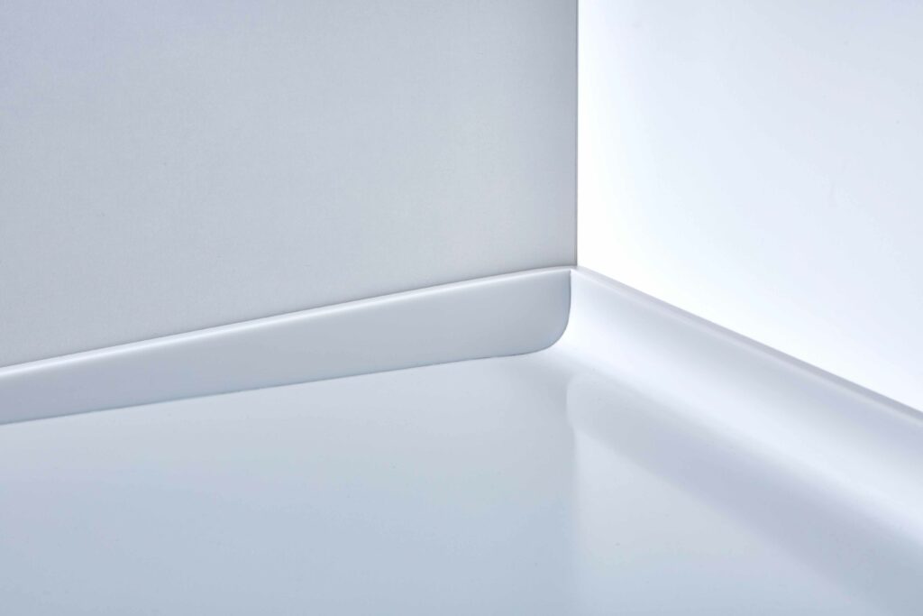 - Coved & sealed joints – Seamless coved joints between vertical and horizontal surfaces remove dirt traps
