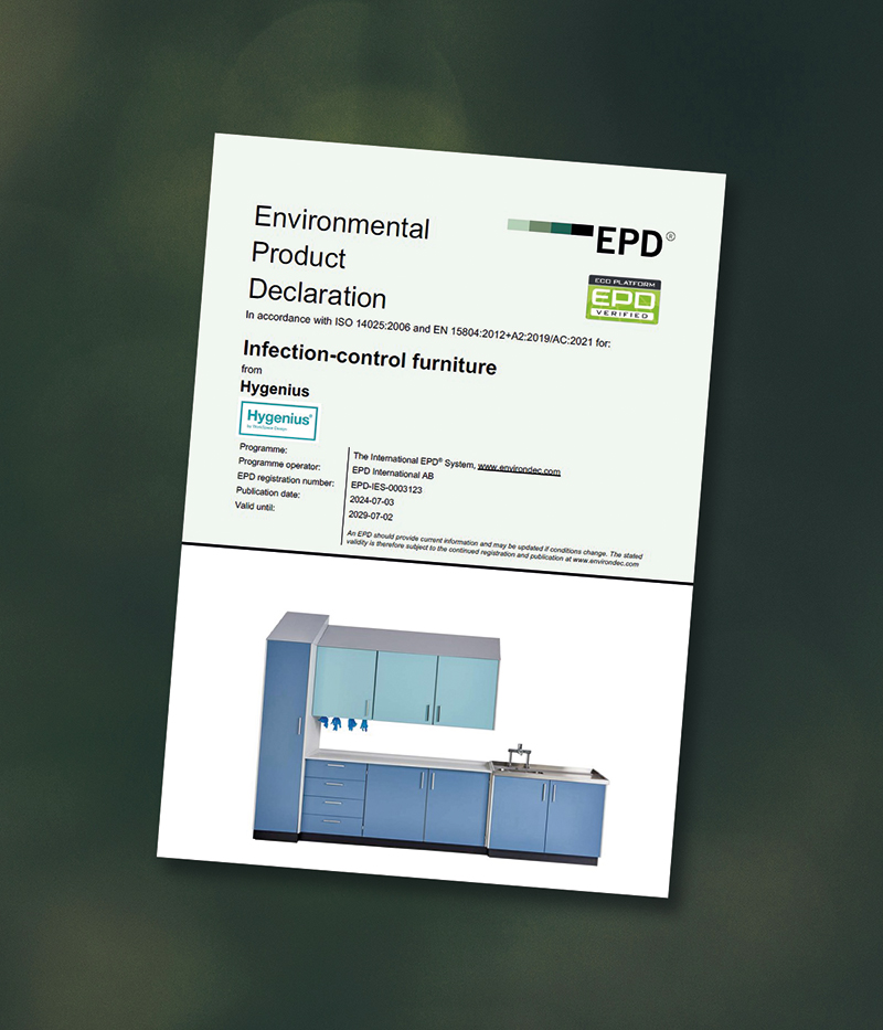 We are pleased to have achieved an Environmental Product Declaration (EPD) certification for our infection control furniture. The certification, which is valid until 2029, has been awarded under the International EPD® System, a global programme for environmental declarations.